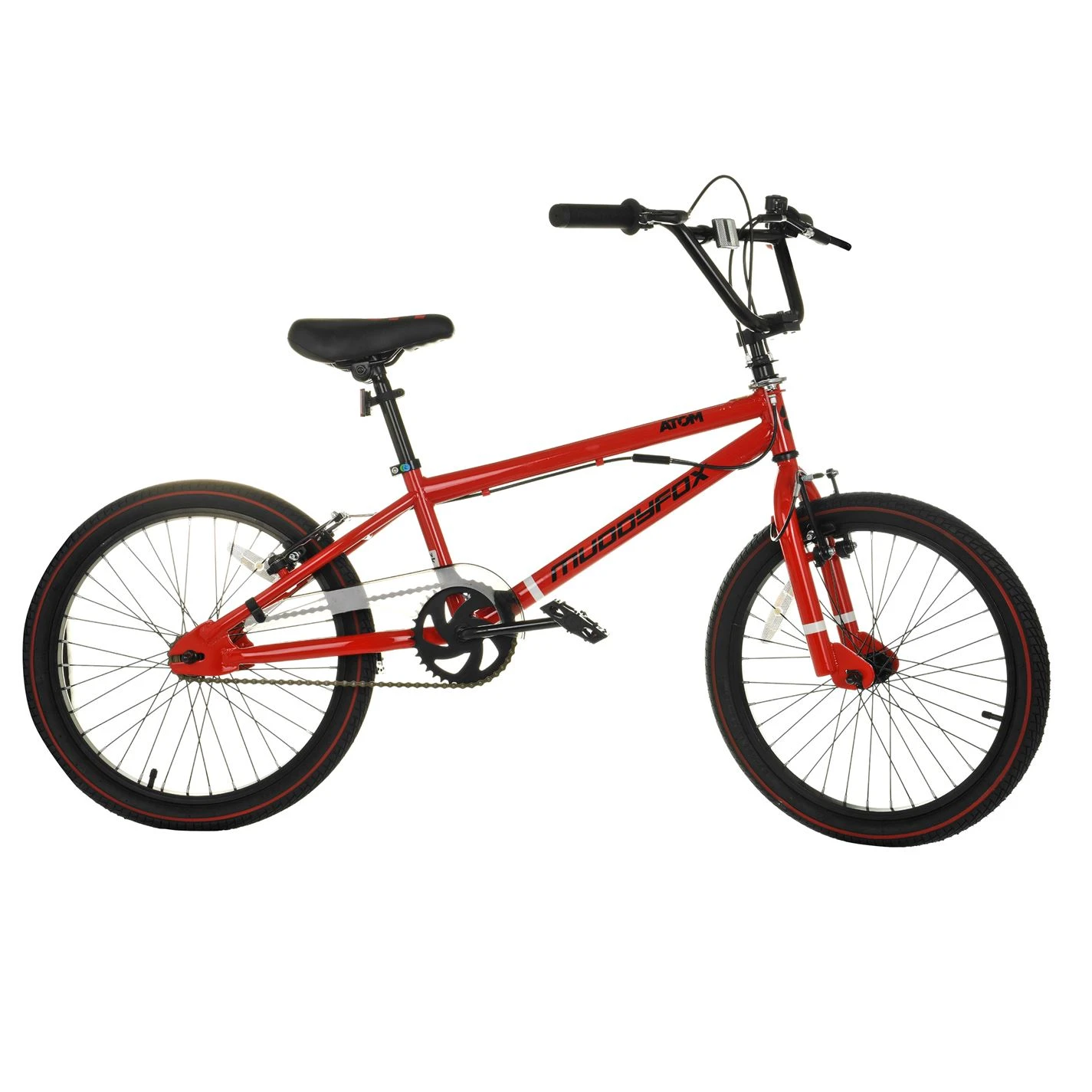 Express your own style of riding through the Muddyfox Atom BMX. This bike features a freestyle BMX frame and forks, alloy V-brakes with a 360-degree gyro for reliable stopping power, as well as a durable one piece crank. The frame’s rich red colour has timeless elegance and will make sure you stand out among your mates.