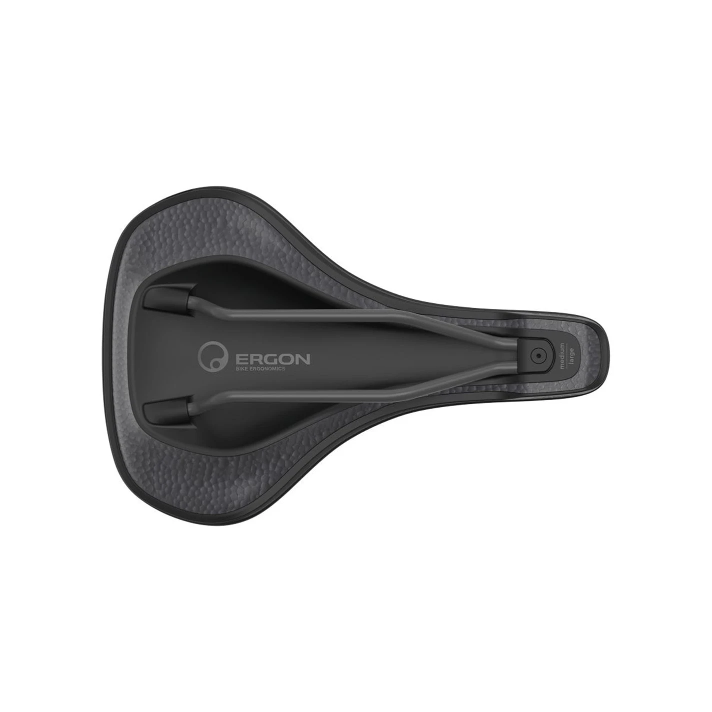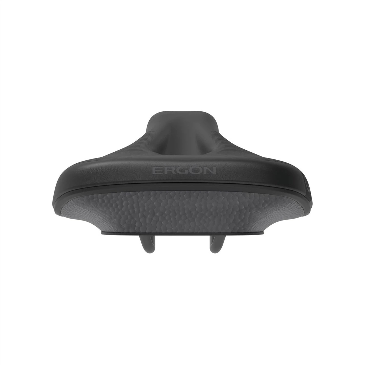 Lower Saddle Shell: The lower stiff saddle shell holds the base and guides the absorbed vibrations into the ergonomic core.