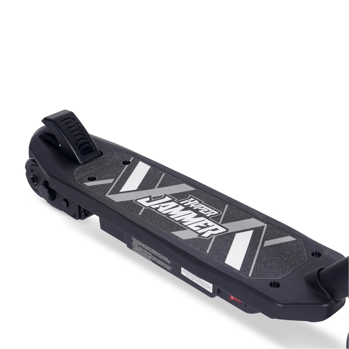 Ride in style with the Hyper Jammer Electric Scooter! This electric scooter features progressive acceleration with a pressure sensitive throttle and can reach speeds of up to 10 MPH. The quick start twist throttle delivers instant power without kicking and a rear foot brake for convenience and safety. Scoot around the neighborhood for up to 40 minutes per full charge. Built for kids 8 years and older, the Hyper Jammer Electric Scooter is all about safety and comfort. The handlebars feature rubber grips for durability and the foot platform is wide with safety grip tape so your feet will stay put as you’re zipping down the sidewalk. The kickstand makes for easy storage in the garage, the backyard, or wherever else you need to store it. This Scooter also features automatic overload cut-out and comes with a 90w motor, a 12-volt battery and charger, and integrated cable. The maximum weight is 120 lbs.