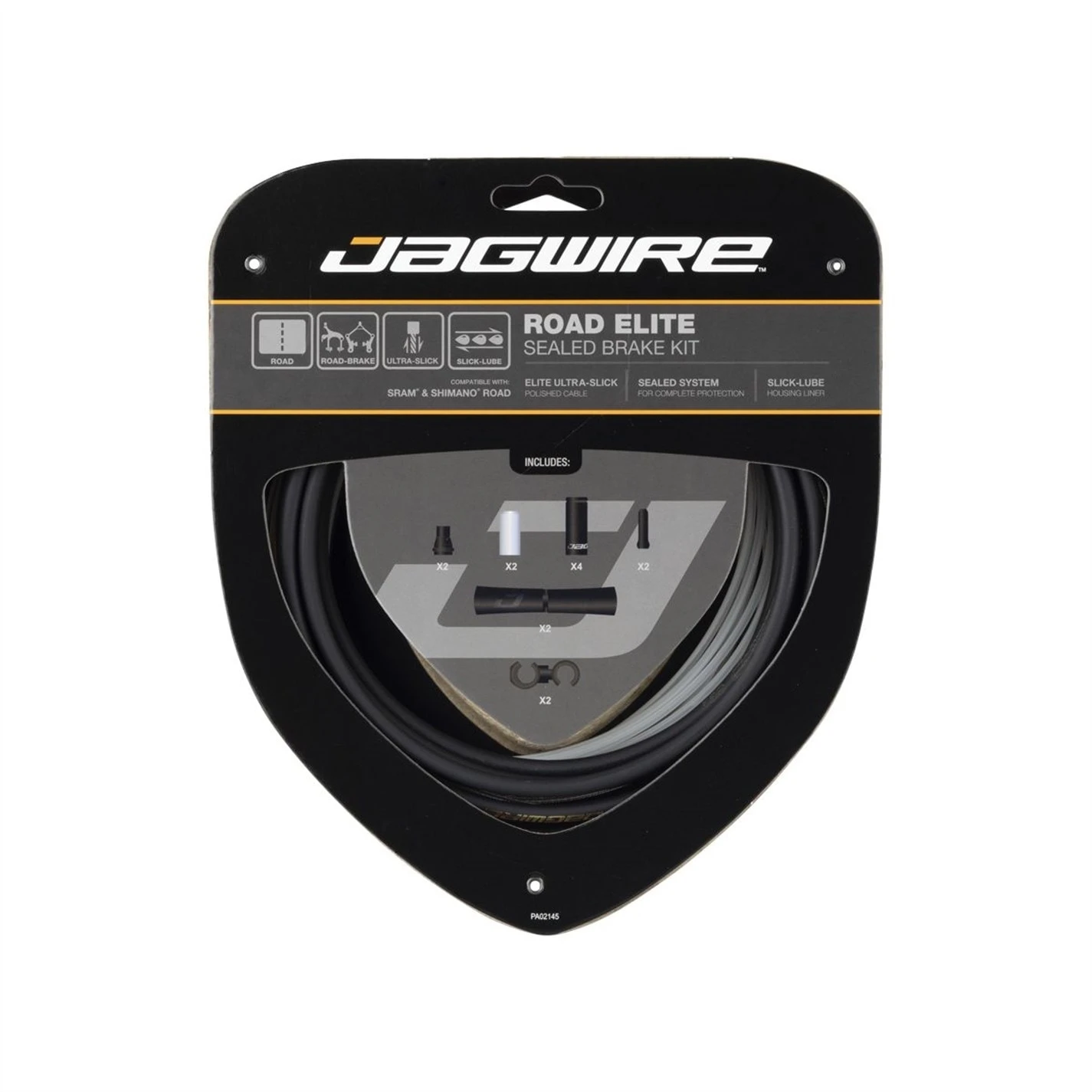 Jagwire Sealed Brake Kits use a continuous liner that seals the system completely, protecting it against dirt, water, and other contamination. Available in three colors for road bike brake systems, this system offers the ultimate combination of protection and low-friction performance. To ensure the best possible performance, we’ve paired Elite Polished Ultra-Slick inner cables with our Slick-Lube continuously-lubricated liners. This combination delivers precise cable movement and excellent durability. The continuous liner running from the levers to the brake calipers offers outstanding protection from dirt and debris. Elite Polished Ultra-Slick cables are paired with Slick-Lube liners to minimize friction. Since most high-performance mountain bikes use hydraulic or mechanical disc brakes with full housing, Elite Sealed Brake kits are available only for road bikes.
