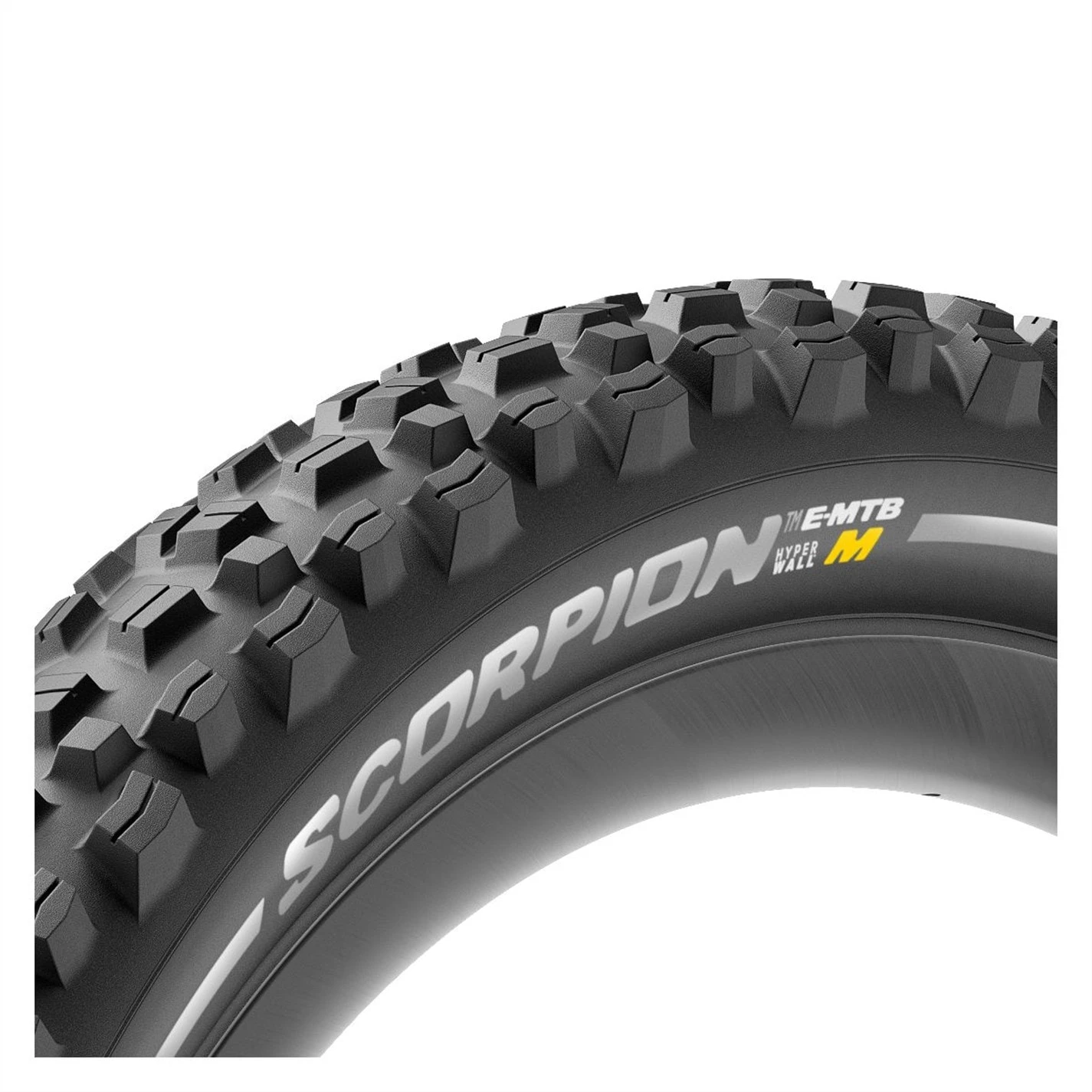 The Scorpion(TM) E-MTB tyre offers different tread patterns for different terrain conditions, from M (mixed), S (loose and soft) and R (rear specific) developed to offer a complete range of high performing tyres for daily abuse generated by electric motors. Developed to withstand the rigors of modern e-bikes, where torque is getting higher and higher, the Scorpion(TM) E-MTB range delivers grip and reliability where it matters. The patented HyperWALL(TM) construction provides the reliability of a DH tyre without the weight penalty, while the proprietary SmartGRIP Gravity Compound delivers grip on both dry and wet conditions as well as superior resistance to tearing thanks to the patented and sustainable chemical component called Lignin. Performance that lasts for the entire lifespan of the tyre, even when worn down.