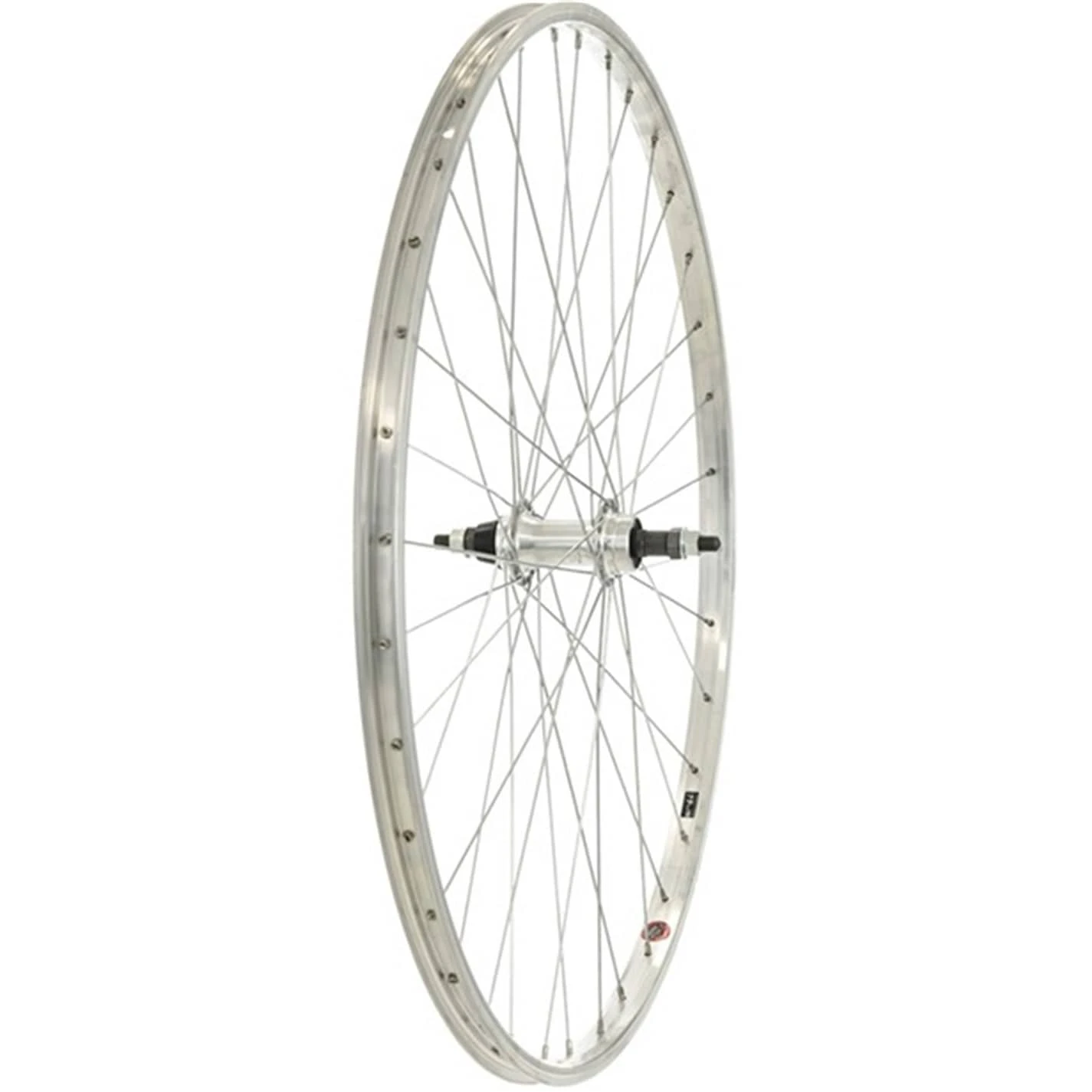 Raleigh’s most economical rear wheel. 26 x 1.75 with silver alloy rim. It has a 36 hole alloy hub with nutted axle. This rear wheel is a suitable replacement for most entry level 26 wheeled bikes. The rear hub gear is sided and threaded to take a standard multiple freewheel