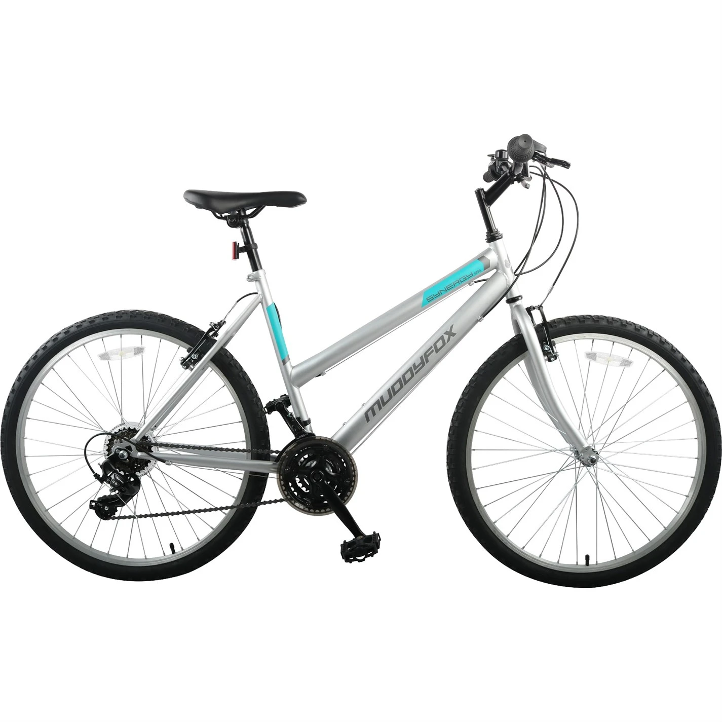 The Muddyfox Synergy 26 is an ideal bike to ride around the city and your local area and has been designed with reliability and comfort in mind. Indexed gears make the Synergy great to ride to take out and about without having to worry about maintenance, while the comfortable riding position means that you can hop on an off as you please without worrying about aches and pains. If your idea of cycling involves lots of lycra and aerodynamic sacrifices then this bike probably isn’t for you. But if you’re looking for a bike that allows you to ride to your local cafe or library, ride to work, or just catch up with friends, then look no further!