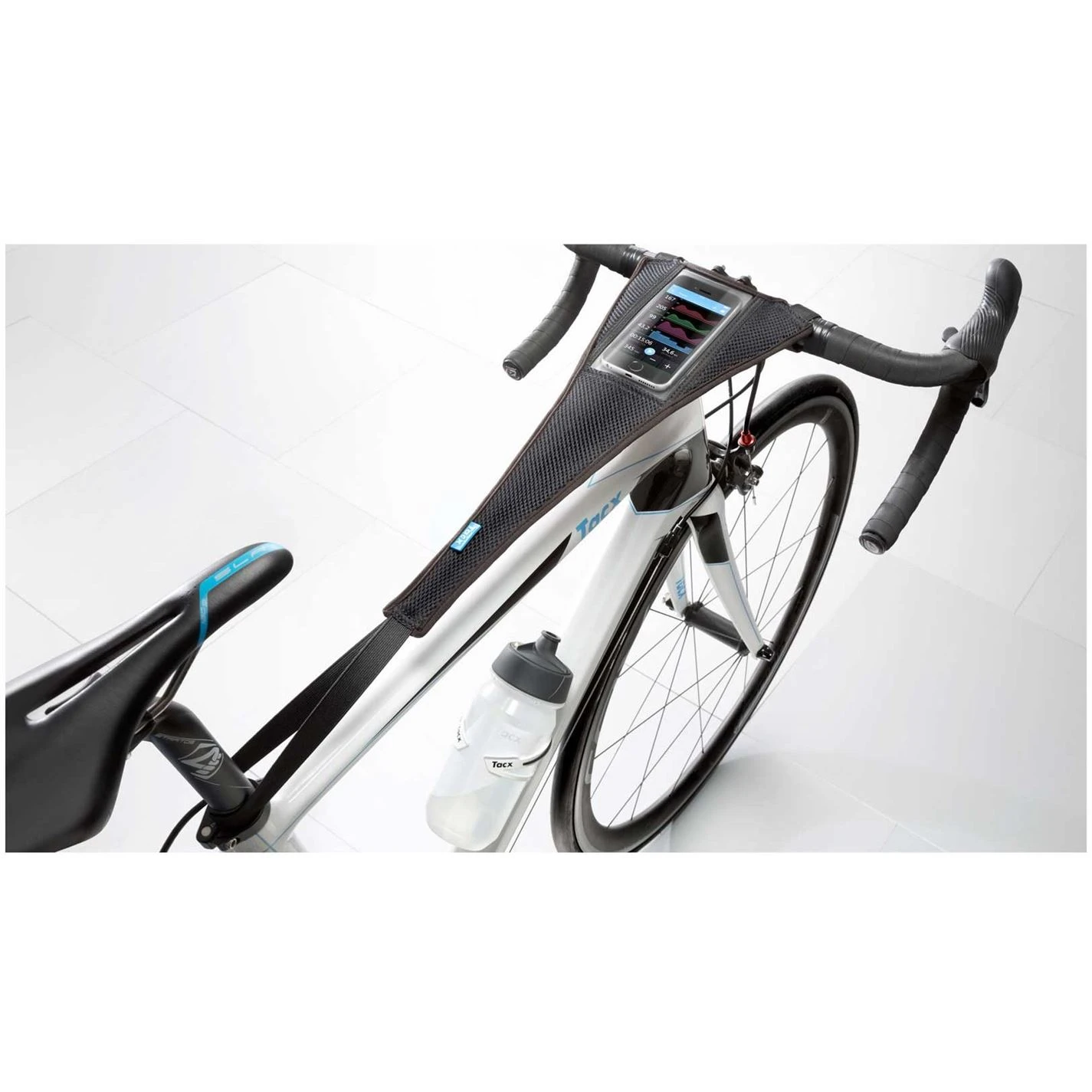 The Tacx Sweat Cover For Smartphone, protects the bike against perspiration and enables you to use the phone whilst training and its clever design fits all bikes and enables easy mounting. Easy to clean it’s made from absorbent textiles to catch and retain that unpreventable perspiration. Sweat is acidic and salty, so when it meets an exposed bit of metal or even paint, it can corrode through it, so it’s important to prevent this. If you are finding yourself training at home a lot more often, then this Sweat Cover will be essential.