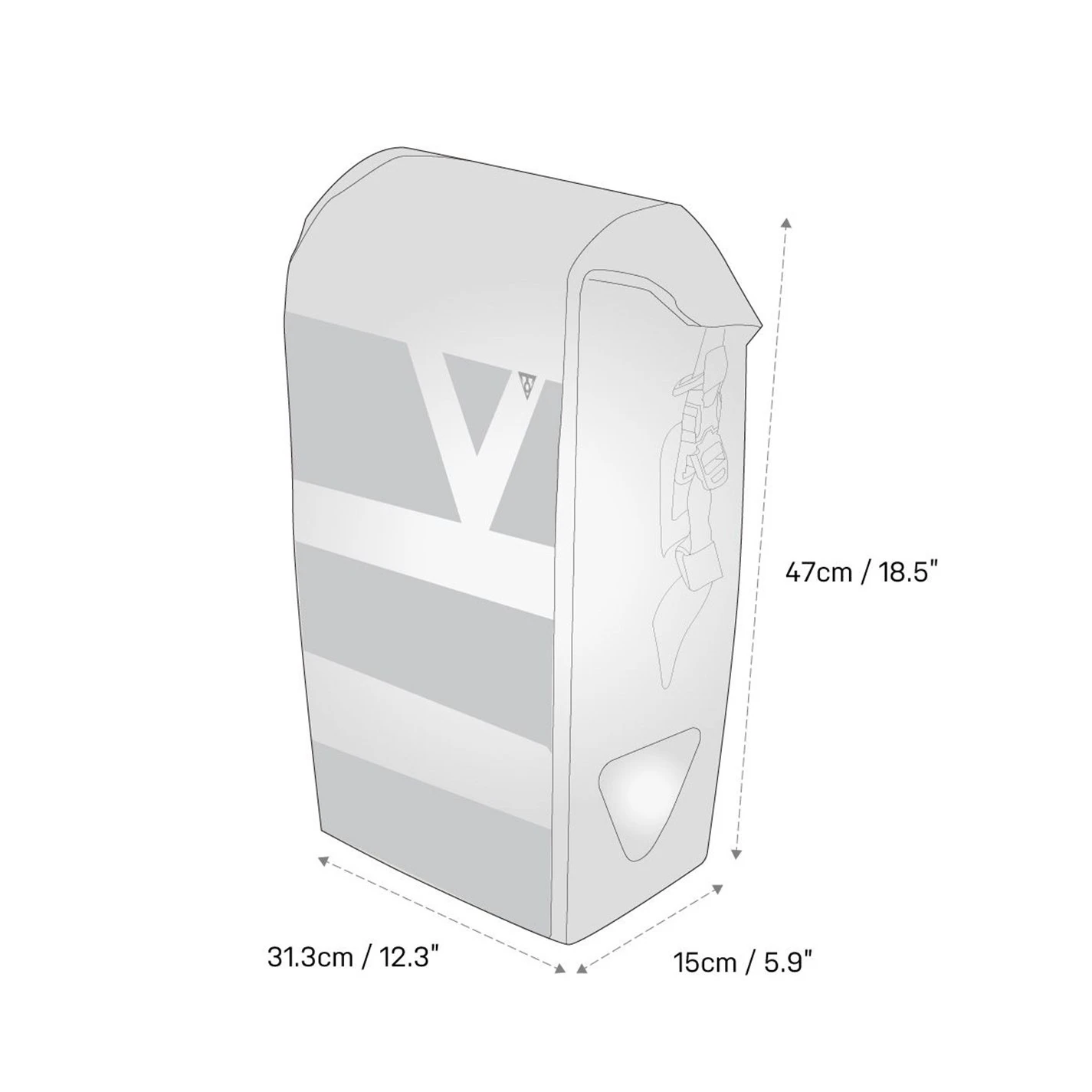 > CAPACITY: 24 L (Per single bag) > MATERIAL: Waterproof fabric sonically welded seams > BAG ATTACHMENT: Handle Loc system, Fits racks 8 / 10 / 12 / 16 mm > ADDED FEATURES: Roll-top closure, Shoulder strap, Reflective printing > SIZE: 47 x 31.3 x 15 / 18.5 x 12.3 x 5.9 (24L / Closure) > WEIGHT: 784 g / 1.73 lb (20L)