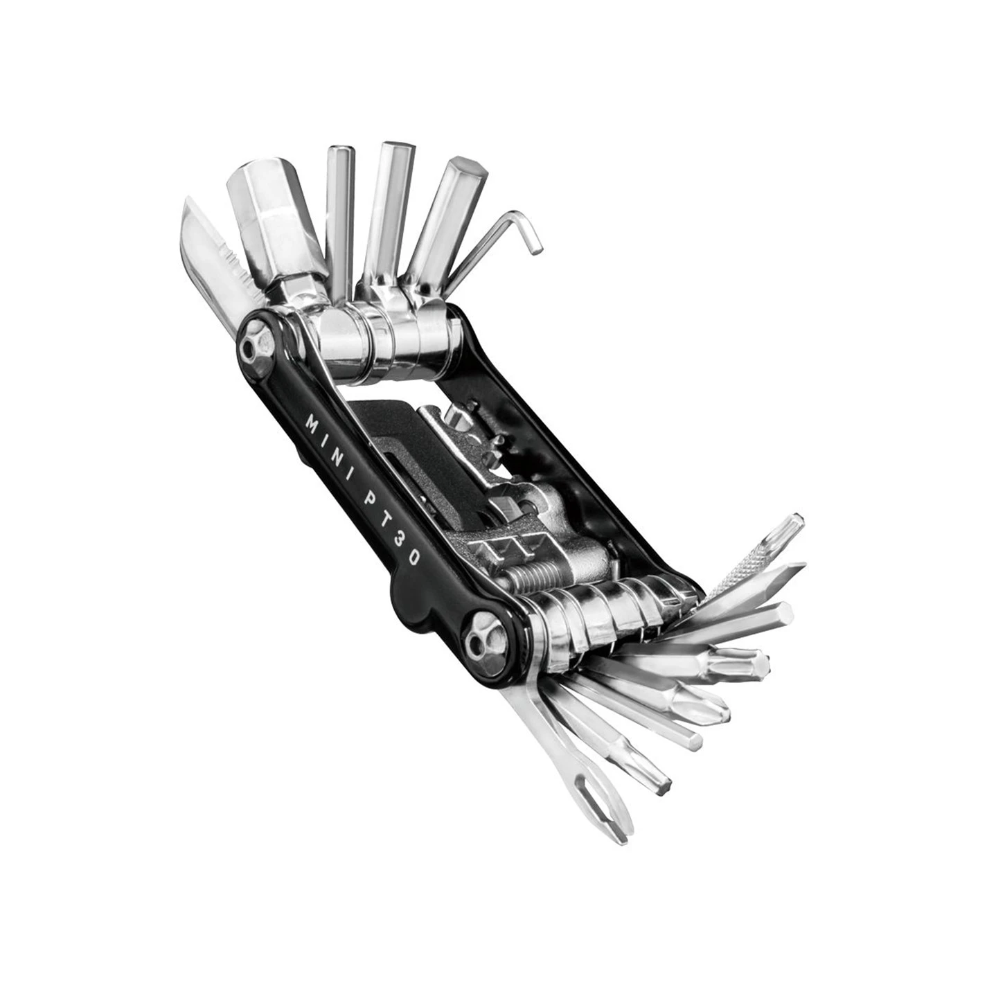 30 function, pro-quality, precision mini tool with forged alloy body built to handle any road or trailside repair.
