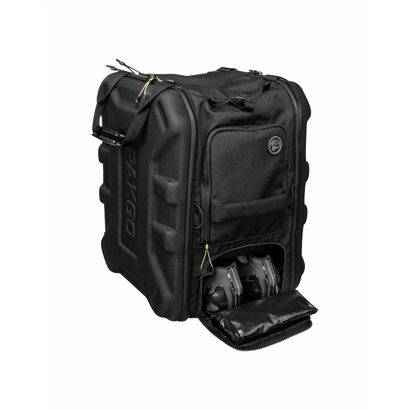 Carry all your cycling gear in one easy-to-pack bag when you head out for your riding adventure. Featuring the same cool shape as our PakGo travel cases, the hard shell GearPack features five divided compartments and keeps your helmet, cycling & post ride clothes, water bottles and more neatly organized, packed and ready to go. Features integrated carry handle and clip on shoulder strap. 40 litre capacity with 5 pockets.