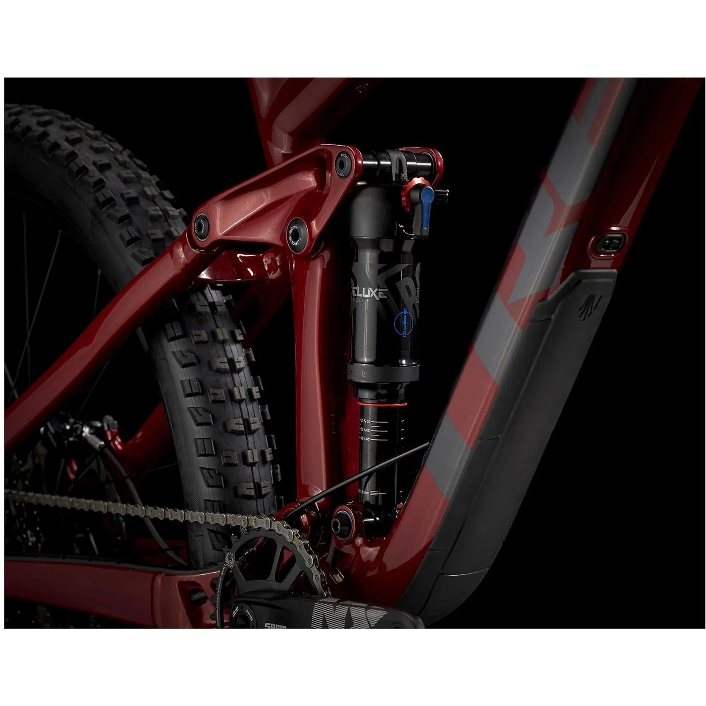 An Alpha Platinum Aluminium frame with 150 mm of rear travel and a RockShox Deluxe Select+ shock. A 160 mm RockShox Gold RL fork with a plush DebonAir spring and a robust SRAM NX Eagle drive train. Plus, completely tubeless Bontrager Line Comp 30 wheels and tyres. What really makes this bike great is that it handles and rides like a bike that costs twice as much. That’s because it’s designed the same way as our top-end Remedy: for a playful ride you can count on when the trail gets rowdy.